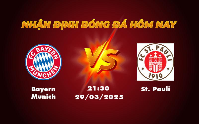 Soi kèo bóng đá giữa Bayern Munich vs St. Pauli, các nhận định hôm nay 21:30 ngày 29/03 tại đây luôn có tỉ lệ chính xác cao. Đừng bỏ lỡ!